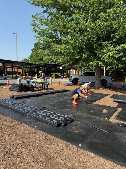 - Made from 5/8” thick dome interlocking recycled rubber mats.